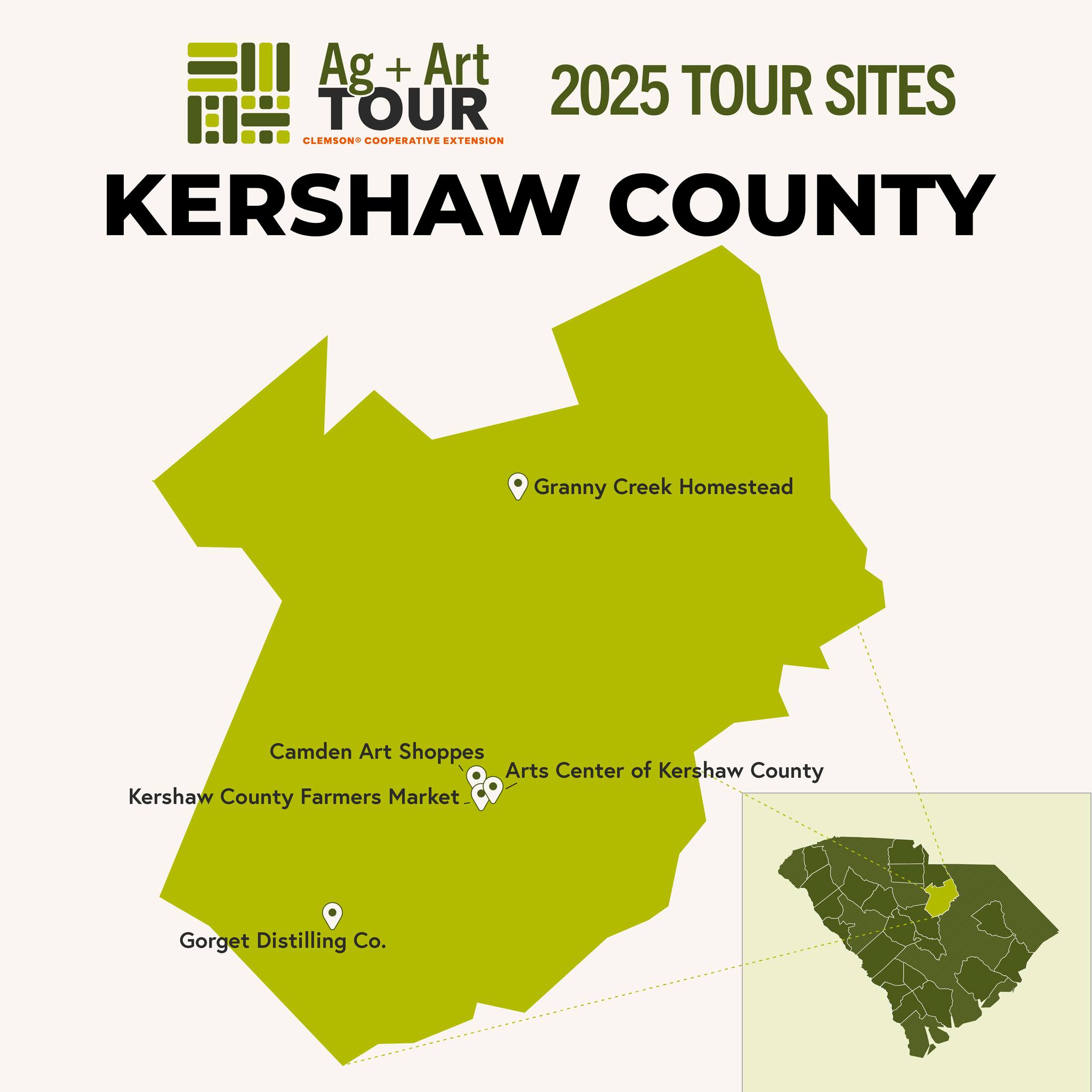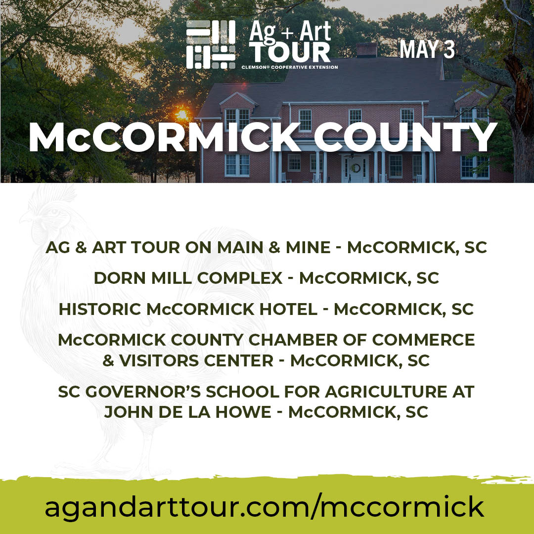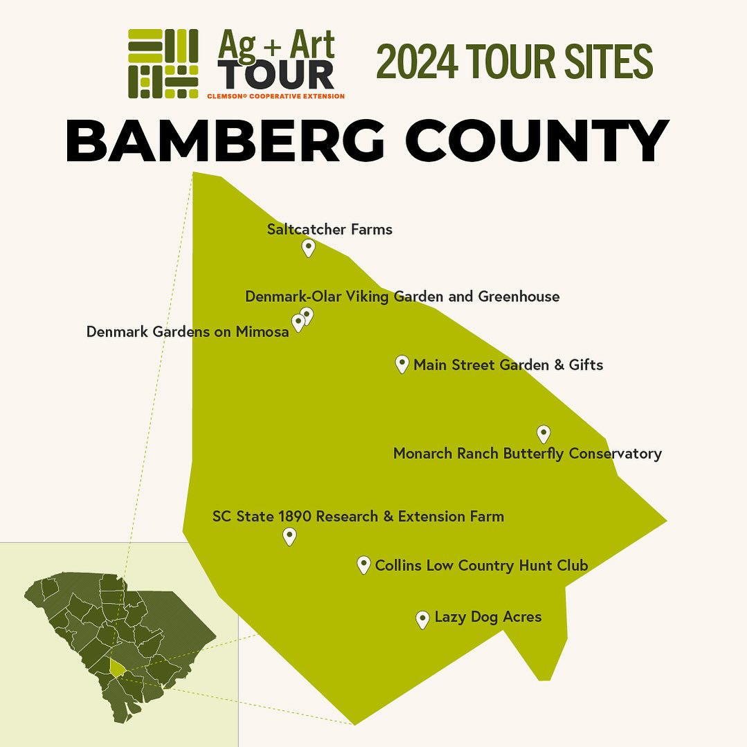 The South Carolina Ag + Art Tour is a free, self-guided tour of farms and markets that feature local artisans at every stop! During the tour, visitors have the opportunity to see first-hand where their food comes from, watch artists in action and purchase their works, enjoy the melodies of local musicians, and learn more about rural life. The tour is the largest free farm and art tour in the nation with over 150,000 visitors participating since 2012.